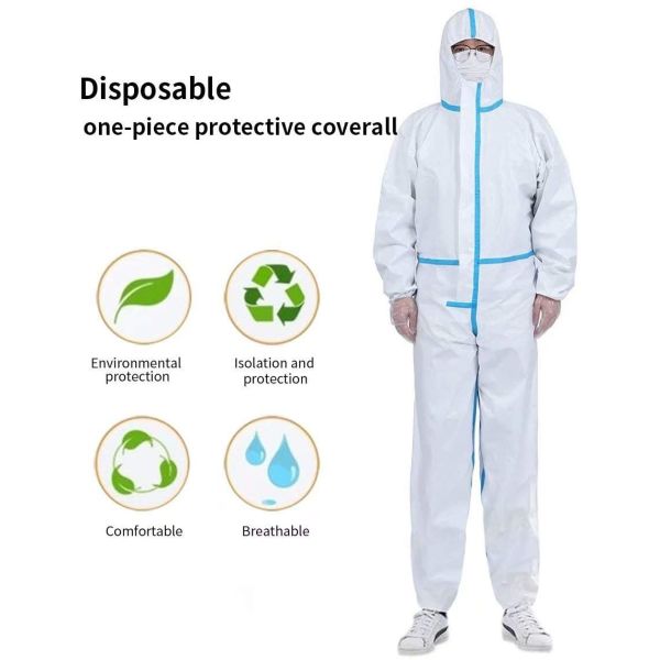 Front long zipper,elastic cuffs,waist,ankles to help prevent splashes from reaching clothing or skin, provide provide higher standard protection.