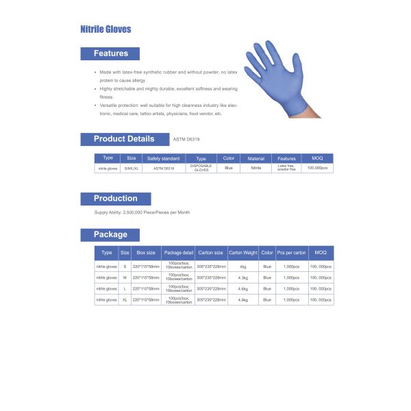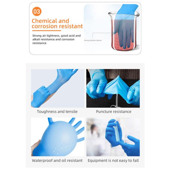9 Inch Blue Disposable Medical Nitrile Hand Gloves Smooth Surface Images |